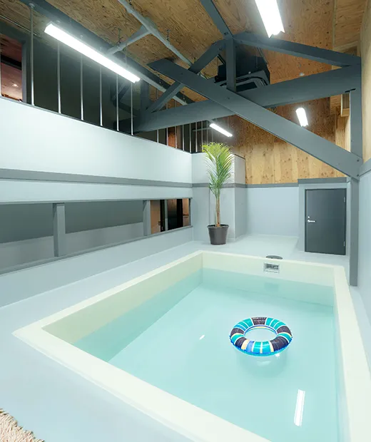 海水浴やサーフィン、釣りを楽しんだ後は、家族や友達と室内の貸切りプライベートプール!雨の日でもお楽しみいただけます。